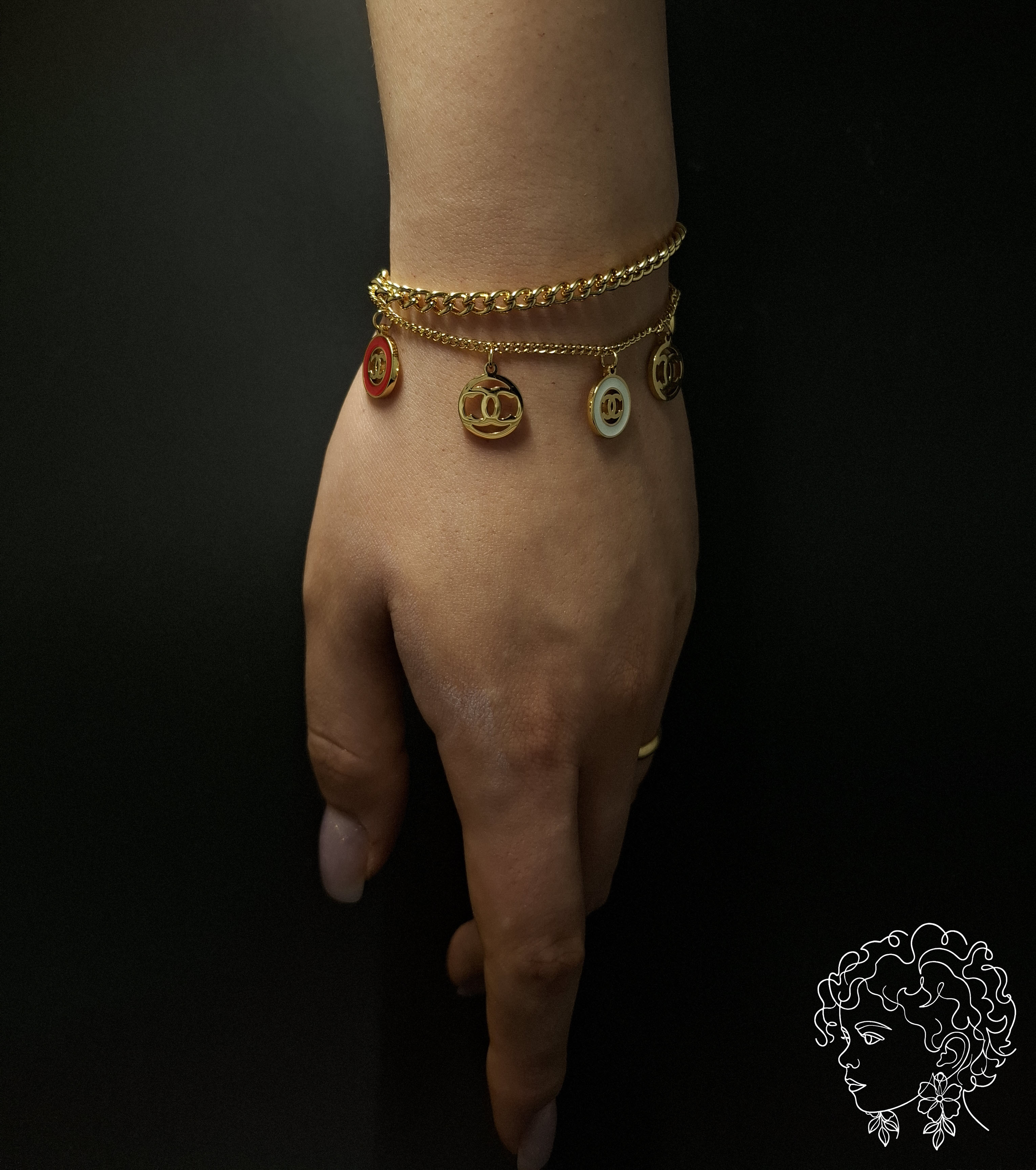 دستیند آویز دار طلایی مناسب برای استایل های کلاسیک و لوکس، ماکسیمال و جسورانه ، کژوال شیک استیل ضد حساسیت رنگ ثابت (مراقبتی) در مجاورت با مواد شوینده و آب قرار نگیرد