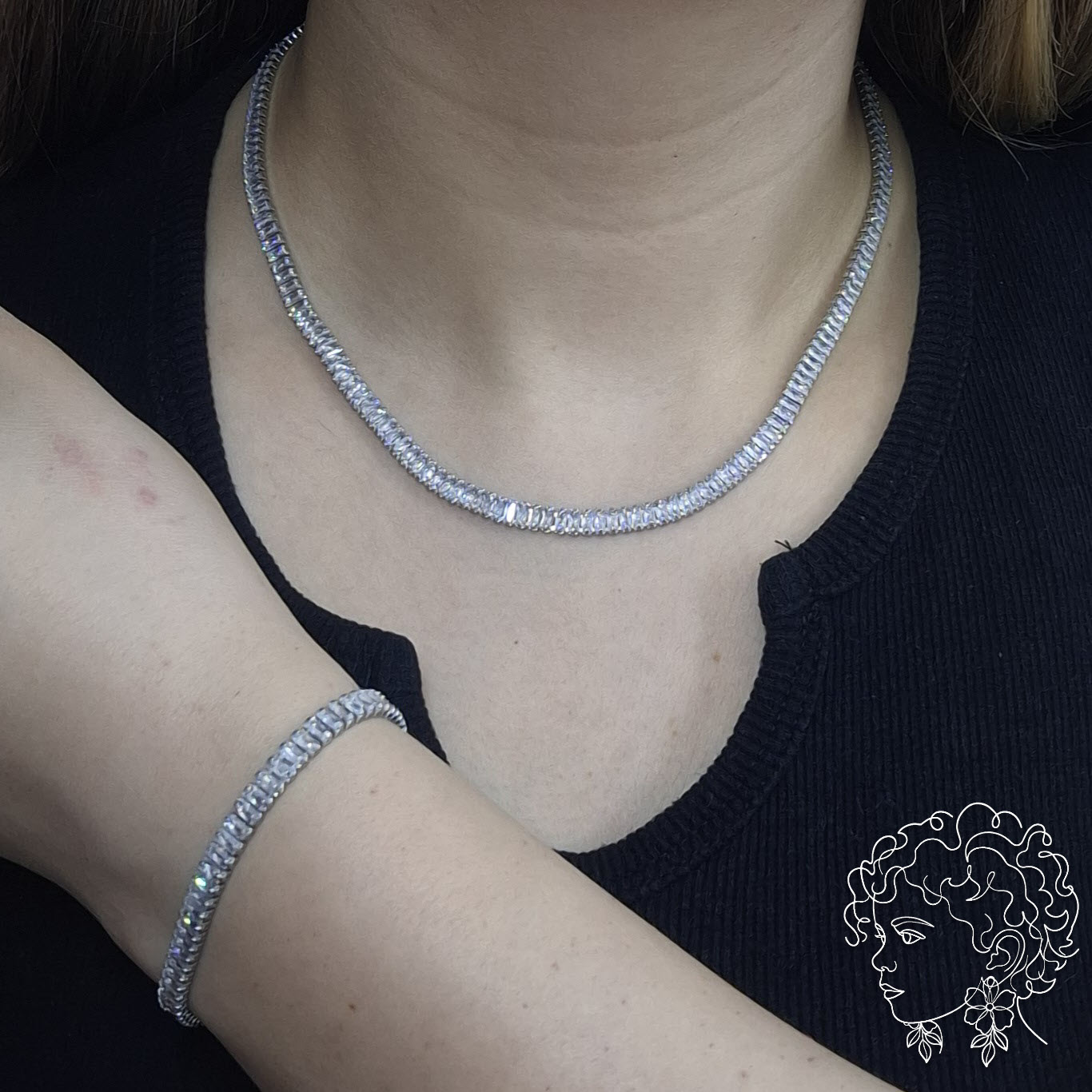 ست تنیسی باگت با سنگ های مستطیلی و درخشش مدرن و اینه ای مناسب برای استایل های مجلسی و شب ، عروسی ، الگانت(شیک و خانومانه) و مدرن استیل ضد حساسیت رنگ ثابت (مراقبتی) در مجاورت با مواد شوینده و آب قرار نگیرد