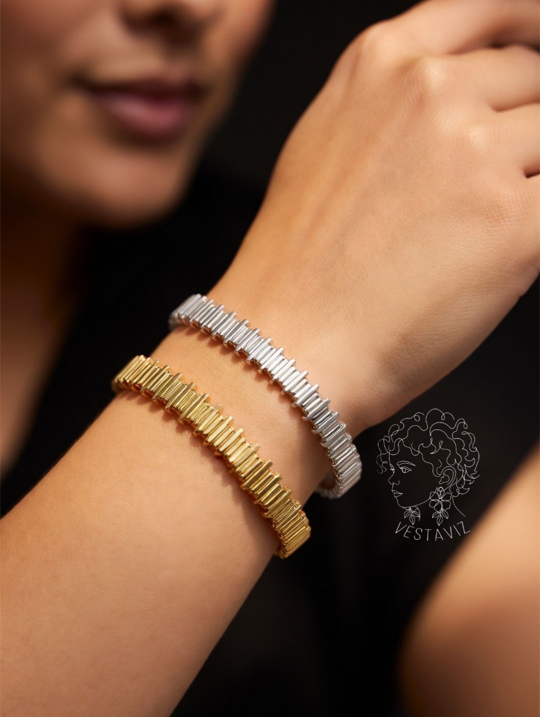بنگل طرح شاخه آبکاری نقره استیل ضد حساسیت مناسب برای استایل های رسمی و مجلسی ، نیمه رسمی و روزمره ، مدرن و مینیمال رنگ ثابت (مراقبتی) در مجاورت با مواد شوینده قرار نگیرد