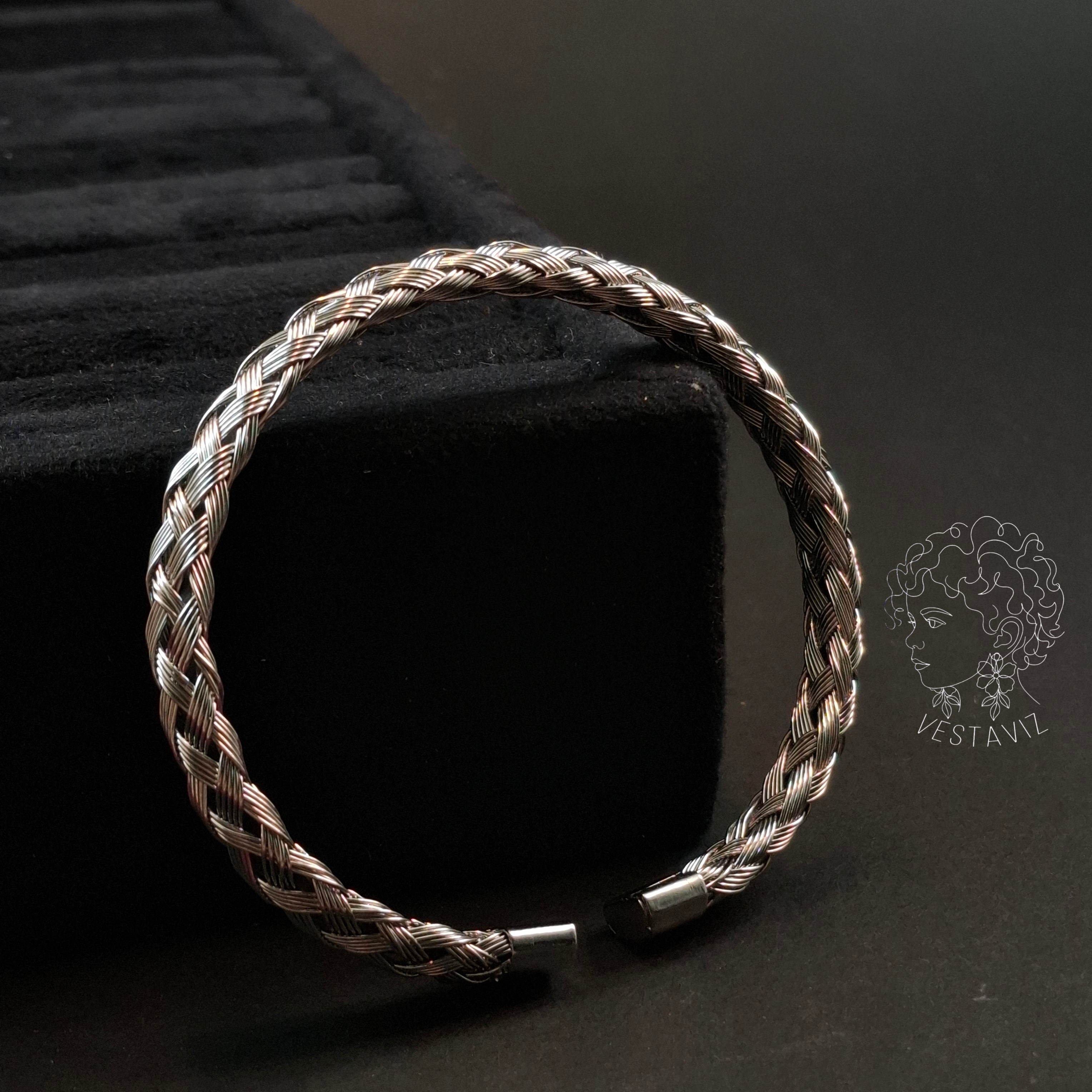 بنگل مردانه طرح حصیری آبکاری نقره استیل ضد حساسیت مناسب برای استایل های کلاسیک مردانه ، کژوال، مدرن ، نیمه رسمی و حتی رسمی رنگ ثابت (مراقبتی) در مجاورت با مواد شوینده قرار نگیرد